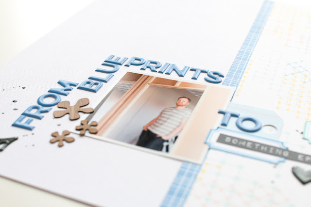 For this layout I wanted to use the Citrus Twist Kits exclusives from the July 2016 "Driftwood" Scrapbook Kit. The exclusive paper "Criss Cross" was one of my favorite papers from the kit and it went perfectly together with the blue alphas.
