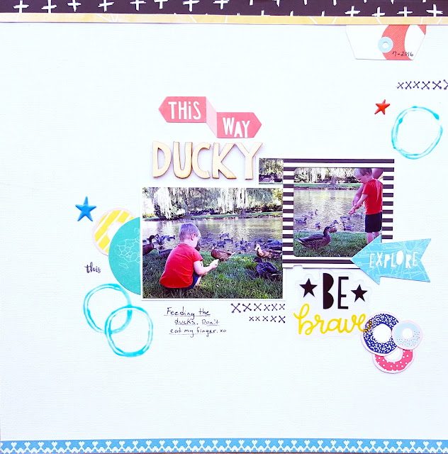 I was inspired by the 2 photos in the sketch and all of the fun little details. I worked with the August "Wild Child" Kit Add-on. Aren't the colors so fun?! Now here is my take on the weekly sketch: