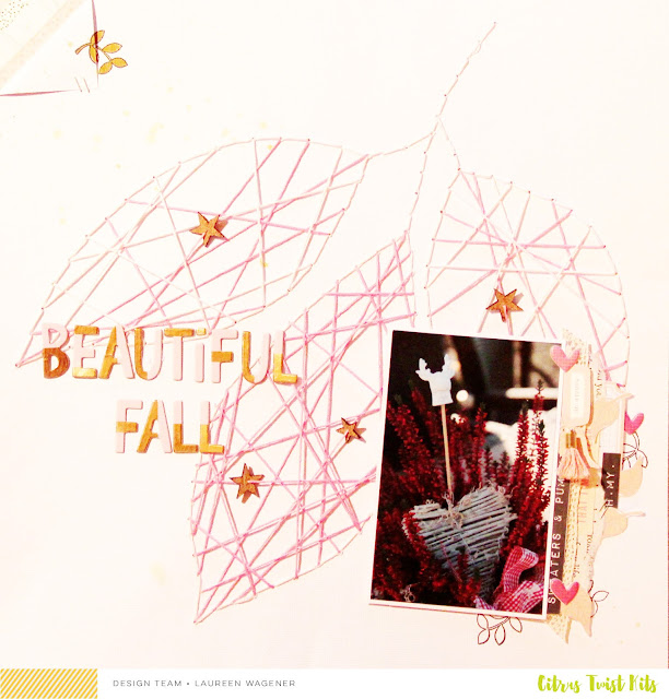 For a different look, I love to use bits and pieces on the thread-in this case, I used the little stars from the kit.