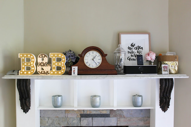 In the corner of the room is one of the perks of my new studio. A mantel! I've never had one before. Not going to lie, it sure is fun to decorate. The fire place doesn't actually work, but Eva really enjoys playing in there.