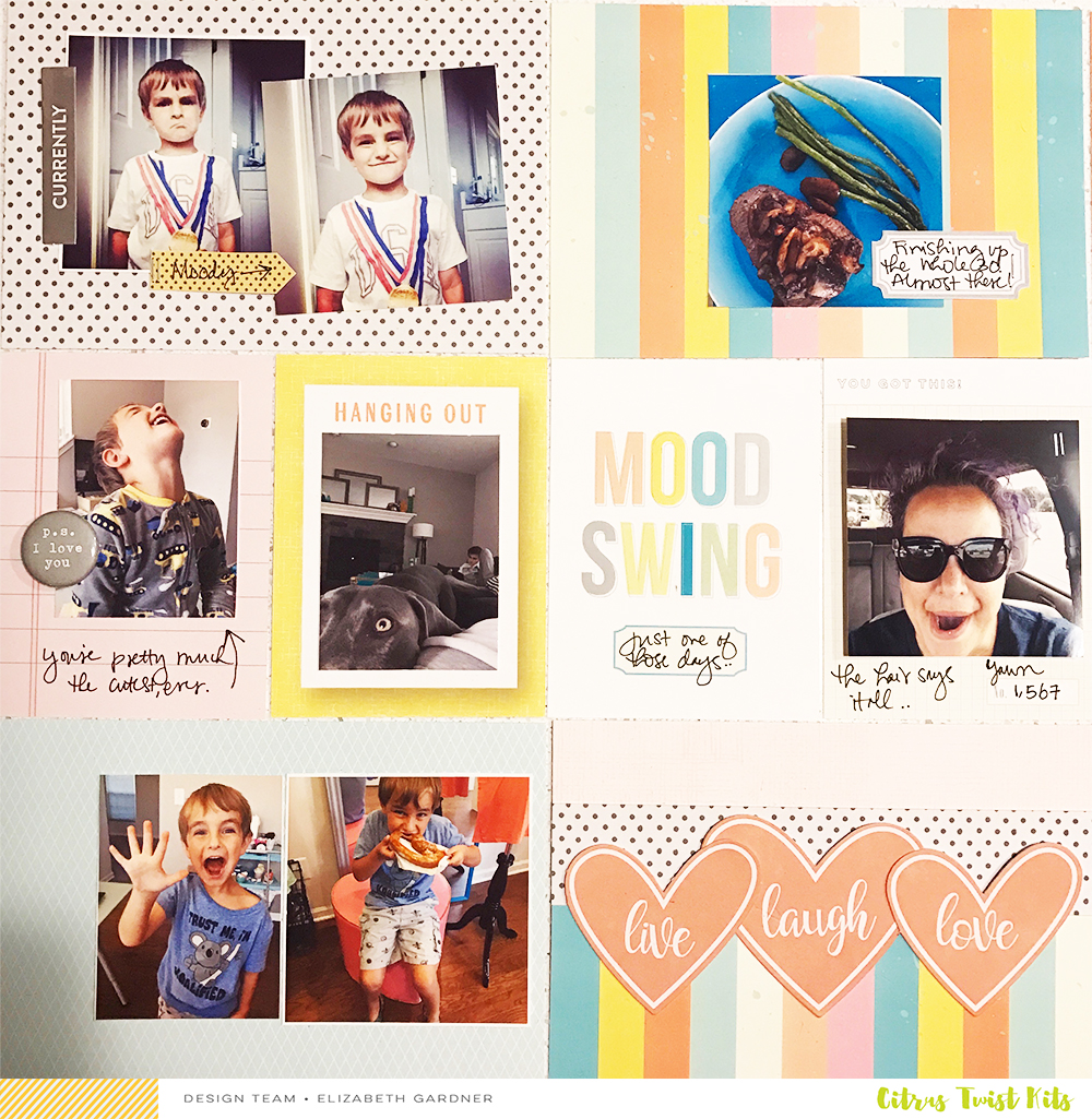 For now I was able to focus a bit more on the little things. A new hair style, a favorite meal, silly faces with the boy... even puppy cuddles and iPad time. These are the little pieces that make up our lives and I have them captured on this spread.