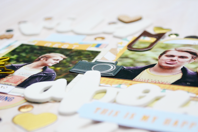 Good morning! Claudia here with you and today I'm sharing a layout using the gorgeous November Main kit and the Sprinkles kit. I'm absolutely in love with these kits and I think they are very versatile in terms of the color scheme you can use. I personally really love using feminine colors (read - pretty much all the time haha!), so I thought that it would be fun to set a 'challenge' for myself to use masculine colors/elements and try something different from my usual style.