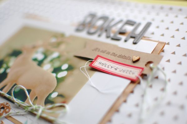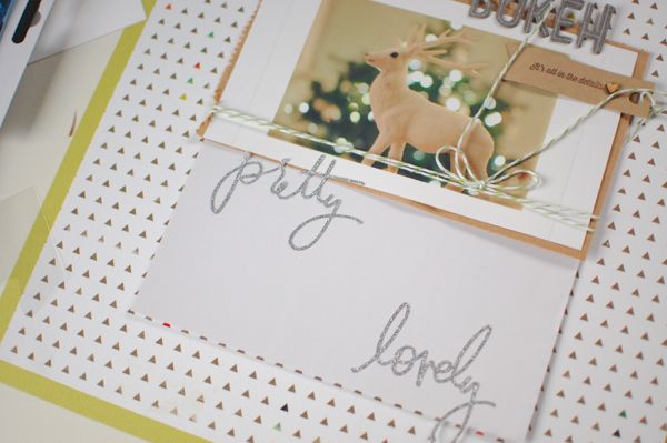 For the next step I used the twine and tag (using the back) from the December Mail Kit packaging to make a bow and a self stamped tag for the picture.The "it´s all in the details" stamp phrase fits perfect in here.