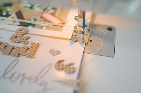 The next step means a lot of fun. Place lots of stickers around the words to complete the look...To give these layer a frame I sewed around the white paper...