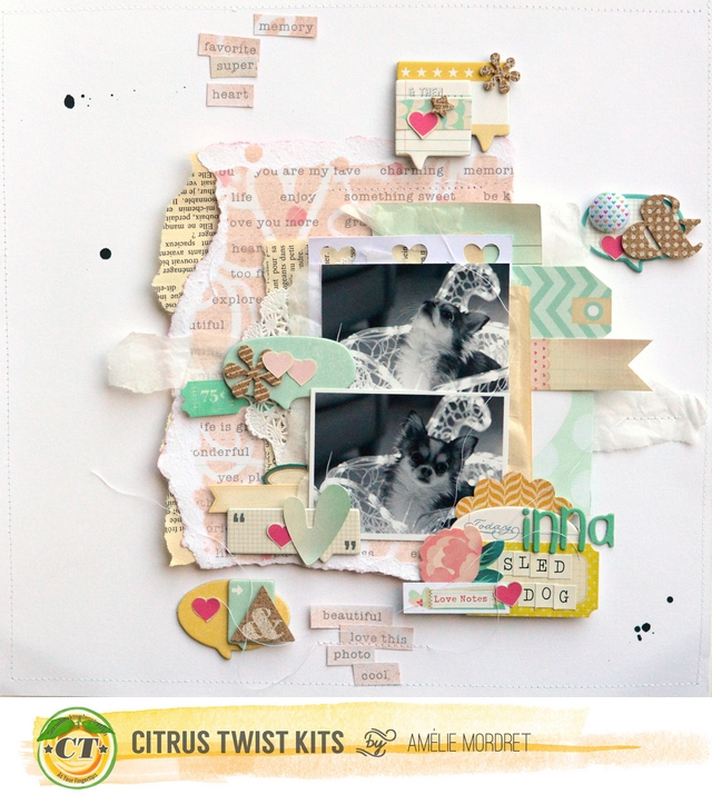 Hi! Here is Amélie and today, I am going to share with you my new layout with January Add-On kit. On this layout, I created my own embellishments using my kit supplies.