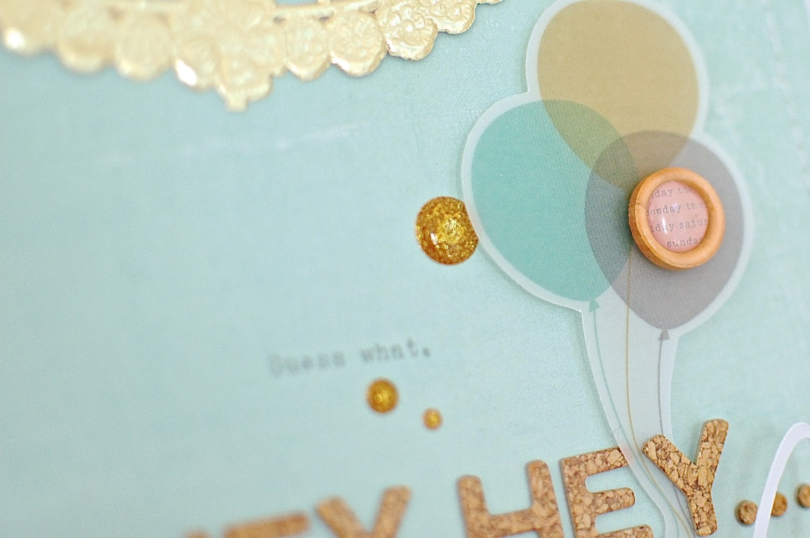 This American Crafts chipboard kork thickers are simply adorable but I like to mix up different fonts. It makes simple pages a little bit more interesting, I think. The word "beautiful" is made with the Silhouette Cameo and white cardstock. To complete the title work I add a piece of the paper straw and those golden heart rub-ons.Thank you so much for visiting today. See you tomorrow for a layout tutorial...