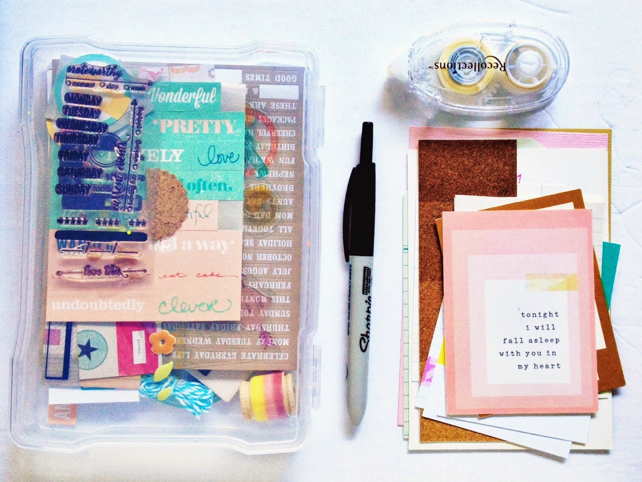 You will want to find an area in your home that has nice indirect light. I prefer to photograph my layouts during the daytime as natural light shows colors best and whites at their whitest. For me, this is in my front foyer. I choose a time of day when the light isn't shining directly in the door and place my layout on a white canvas. I stand over the layout and photograph straight down.