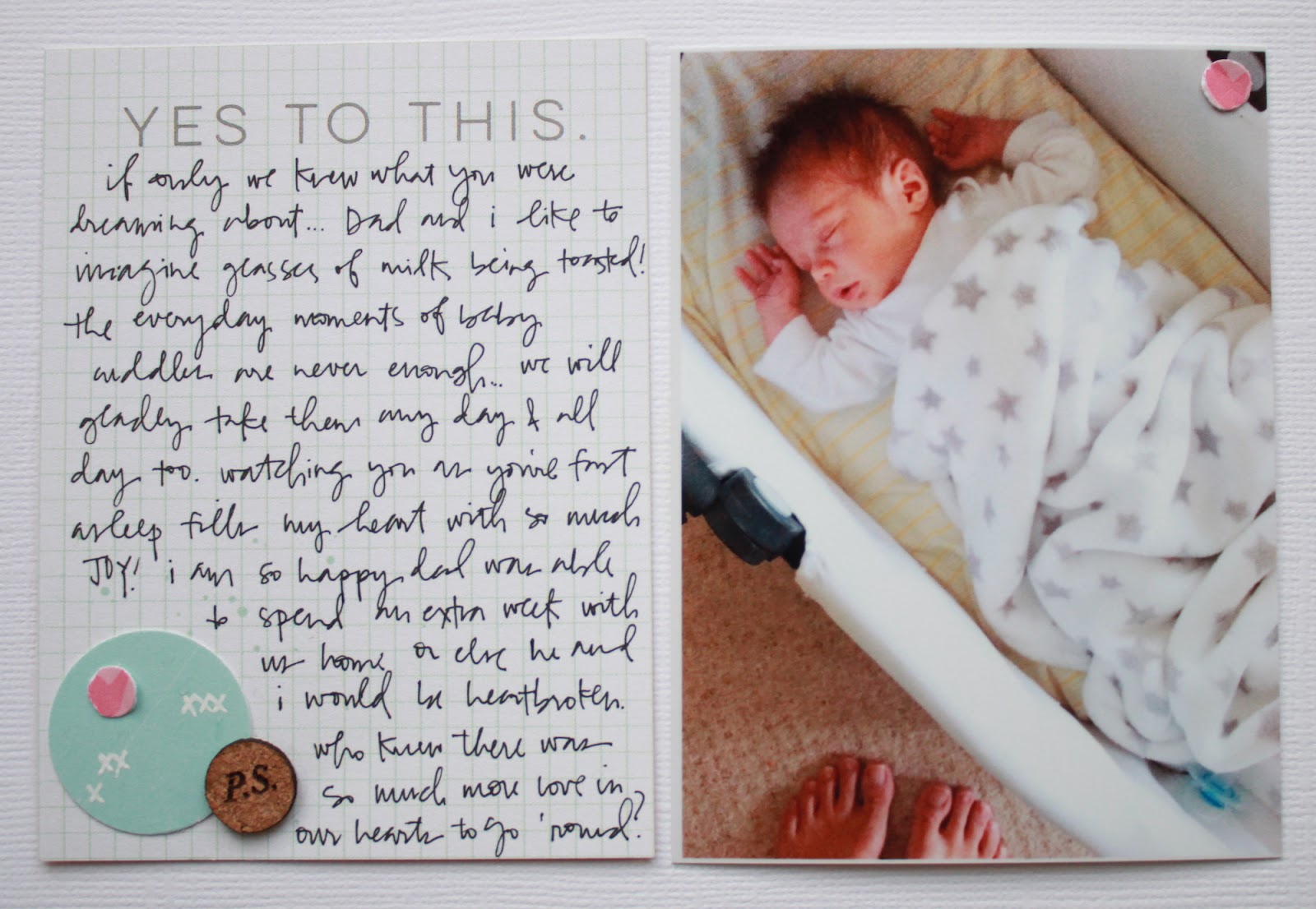 A few words created using Seven Paper Alphabet coming from February PL Kit, one stamp from the same kit (hello), "loving this" paper cut from the freebie sheet that You get with Your PL kit each and every month. And exactly two puffy stickers from February Sprinkles Kit. Additionally I have few tiny digital elements that I printed with my journaling. That's it!