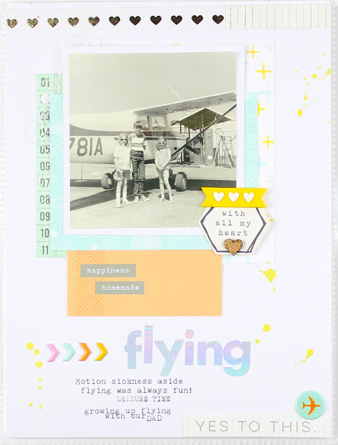 And my first thought when I look back at this is - the background paper - so much yellow! Haha, Although you'll notice I couldn't help but add a white border around the outside...had to include a little bit of my "norm" into the mix. This paper was one of my favourites from the kit and I had intended to use it differently but I'm kinda loving this page - it's different to my usual style and that's what I find so fun! I used the February Main and Add-on kits for this page (plus I picked a label from my stash).