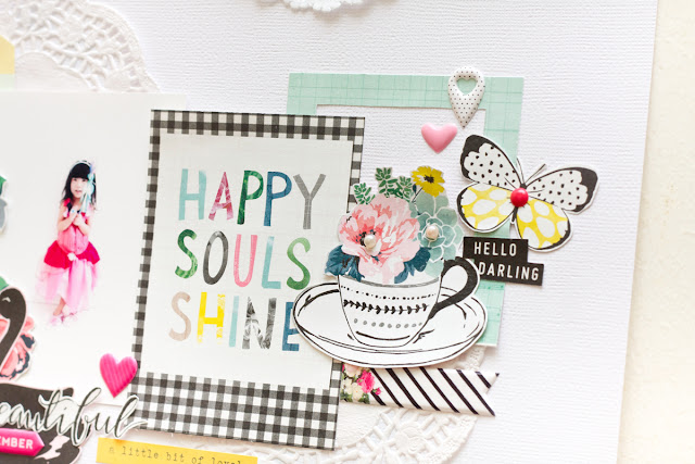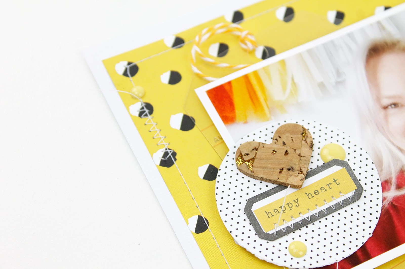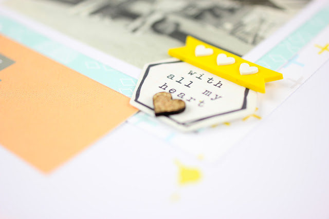 I wanted to tie in the circle theme and the heart patterned paper was the perfect touch to my photo! I had so much fun working with Emma and being challenged in new ways. It's so great to try other techniques or work outside of my comfort zone to create a fresh and new layout.