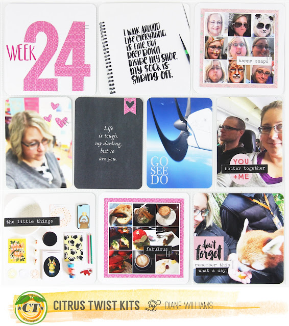 I used as much pink as I could from the Citrus Twist Kits July Pocket Life kit for this week!