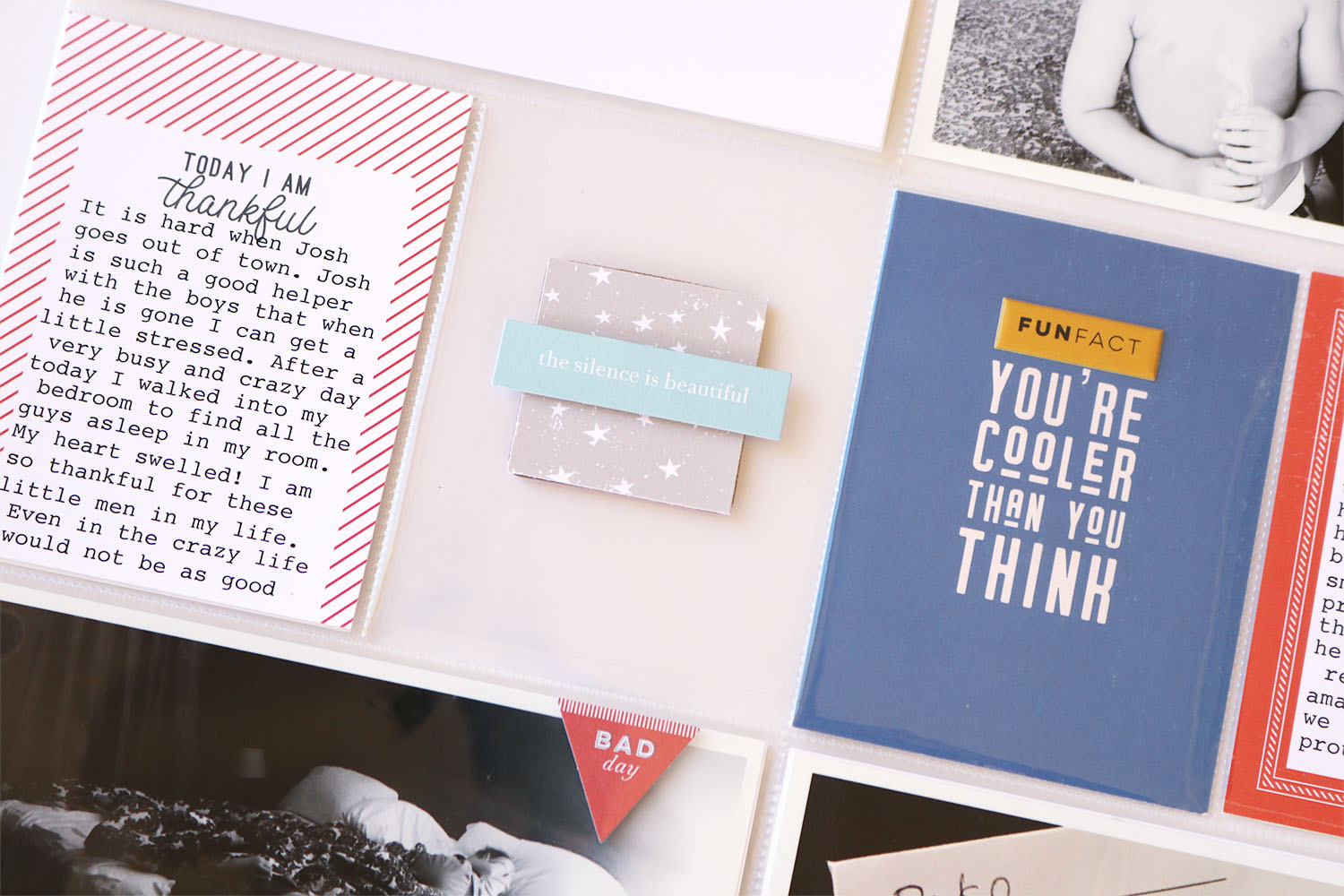 To add a little more interest I created two see-through pockets. I love the clean look of these pockets on the spread.