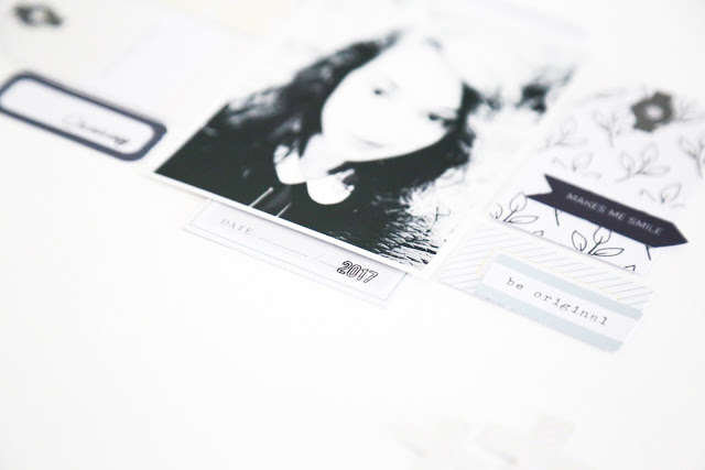 I've framed the photo here with layers of paper, a sticker, die-cut and journal tab