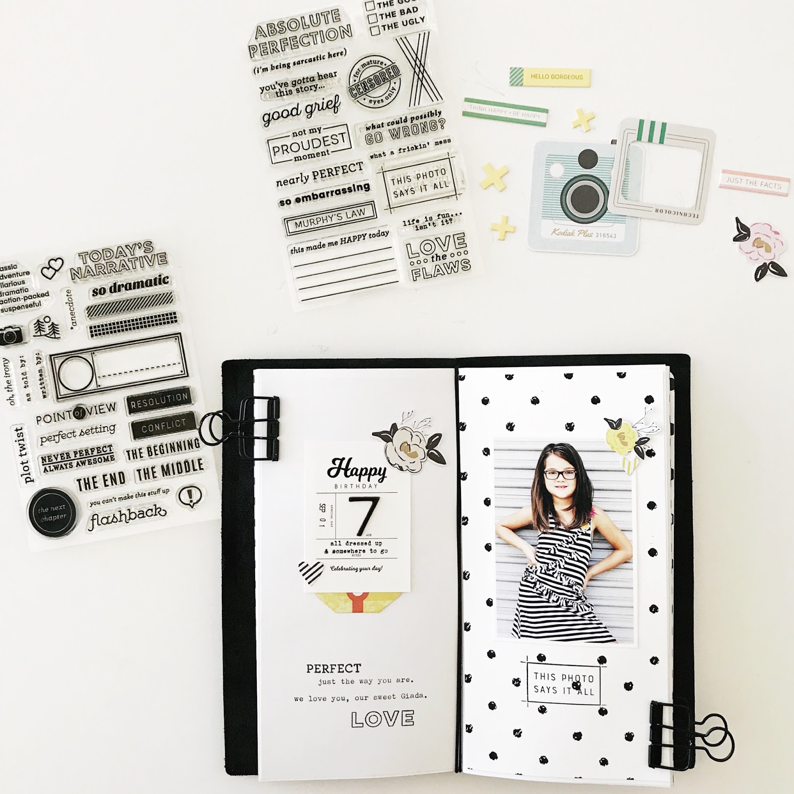There isn't a whole lot of story to go with this page, so for my journaling I used a combination of the word stickers and stamps. I think it's a fun way to add some story to your page and love doing this on my pages (obviously not suited for all pages, limited by the stickers/stamps you have on hand and how long you want your journaling to be!).