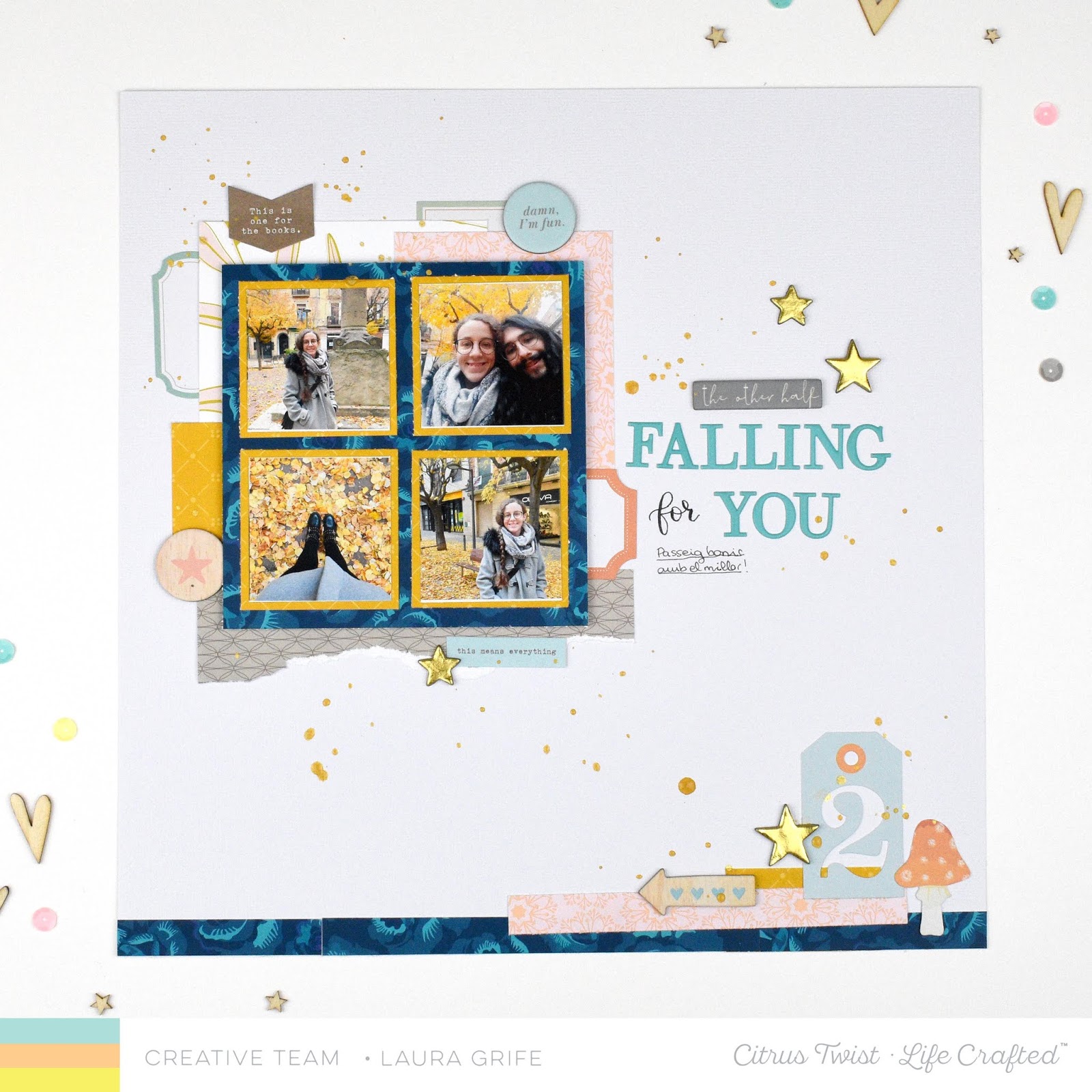 Finally, I added all the embellishments I could! The diecuts and chipboard stickers are the cutest, but I have to admit that the gold stars are my favourite of all time! Are you with me? ;)